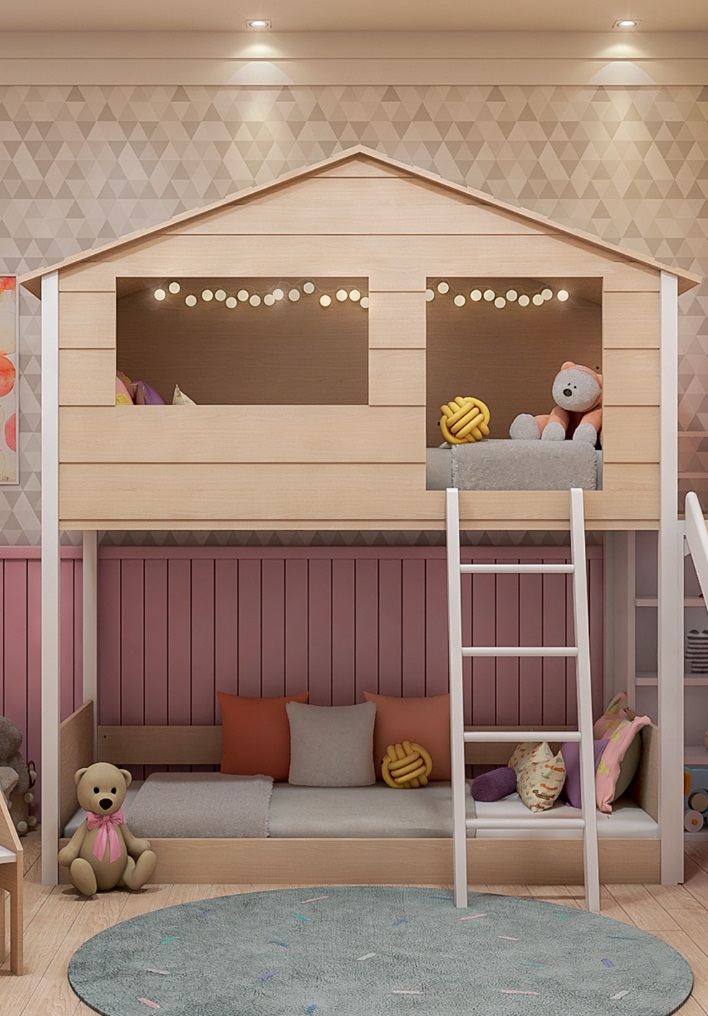 A Beliche com Casinha foi desenvolvido para estimular a independência das crianças de forma livre, o Beliche Montessoriano foi idealizado para remeter a uma casa na árvore na qual as crianças possam subir e descer com segurança.