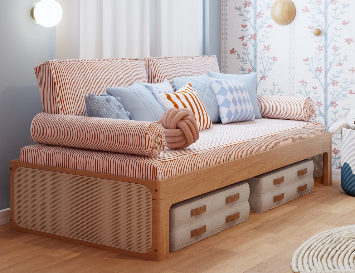 Com uma proposta contemporânea e cheia de cor, A Cama Solteiro valoriza os elementos naturais — como madeira —, trazendo aconchego, autenticidade e muito estilo para o ambiente.