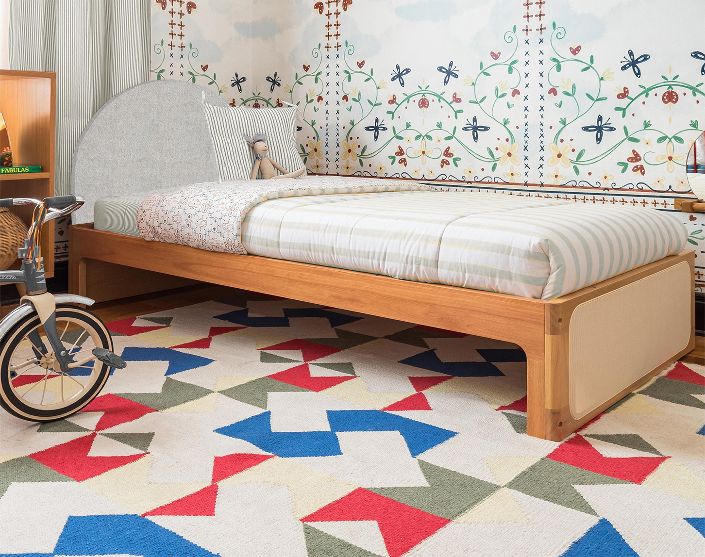 Com uma proposta contemporânea e cheia de cor, A Cama Solteiro valoriza os elementos naturais — como madeira —, trazendo aconchego, autenticidade e muito estilo para o ambiente.