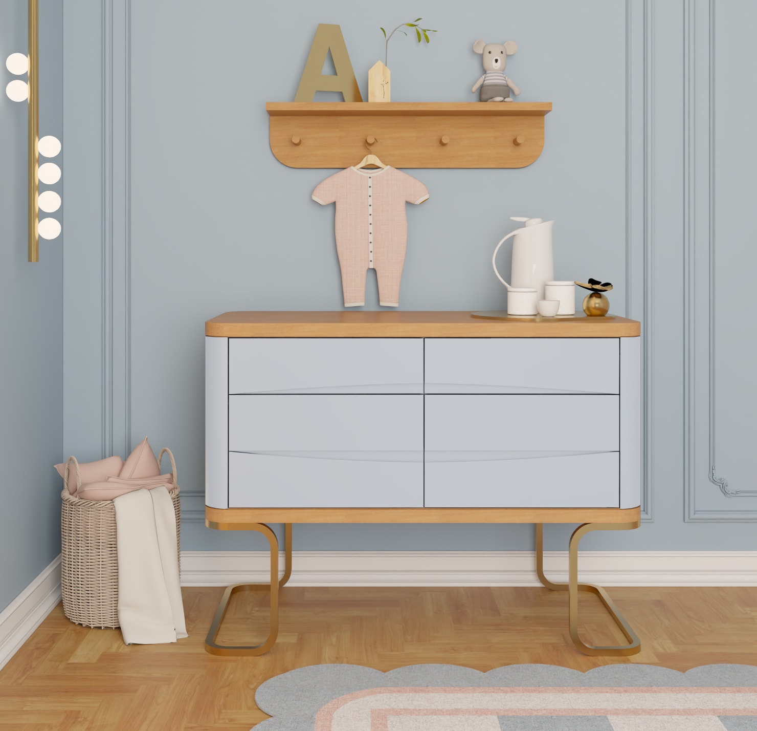 A Cômoda Luxo 6 Gavetas é uma linha sofisticada que remete ao clima glamour e cores da cidade das luzes nos anos 20, início da era de ouro do cinema americano trazido para o universo infantil através do design.foi baseada no estilo clean traz consigo conceitos de elegância e charme, suas gavetas com corrediças telescópicas e puxadores embutidos garantem durabilidade e um toque de sofisticação. A Cômoda de bebe tem um design minimalista trazendo aconchego e leveza para o quarto do seu bebê. Suas seis gavetas proporcionam amplo espaço para guardar roupas, acessórios ou itens pessoais, mantendo tudo sempre acessível e arrumado. A Cômoda infantil transforma seu espaço em um local harmonioso e organizado, elevando o conforto do dia a dia.