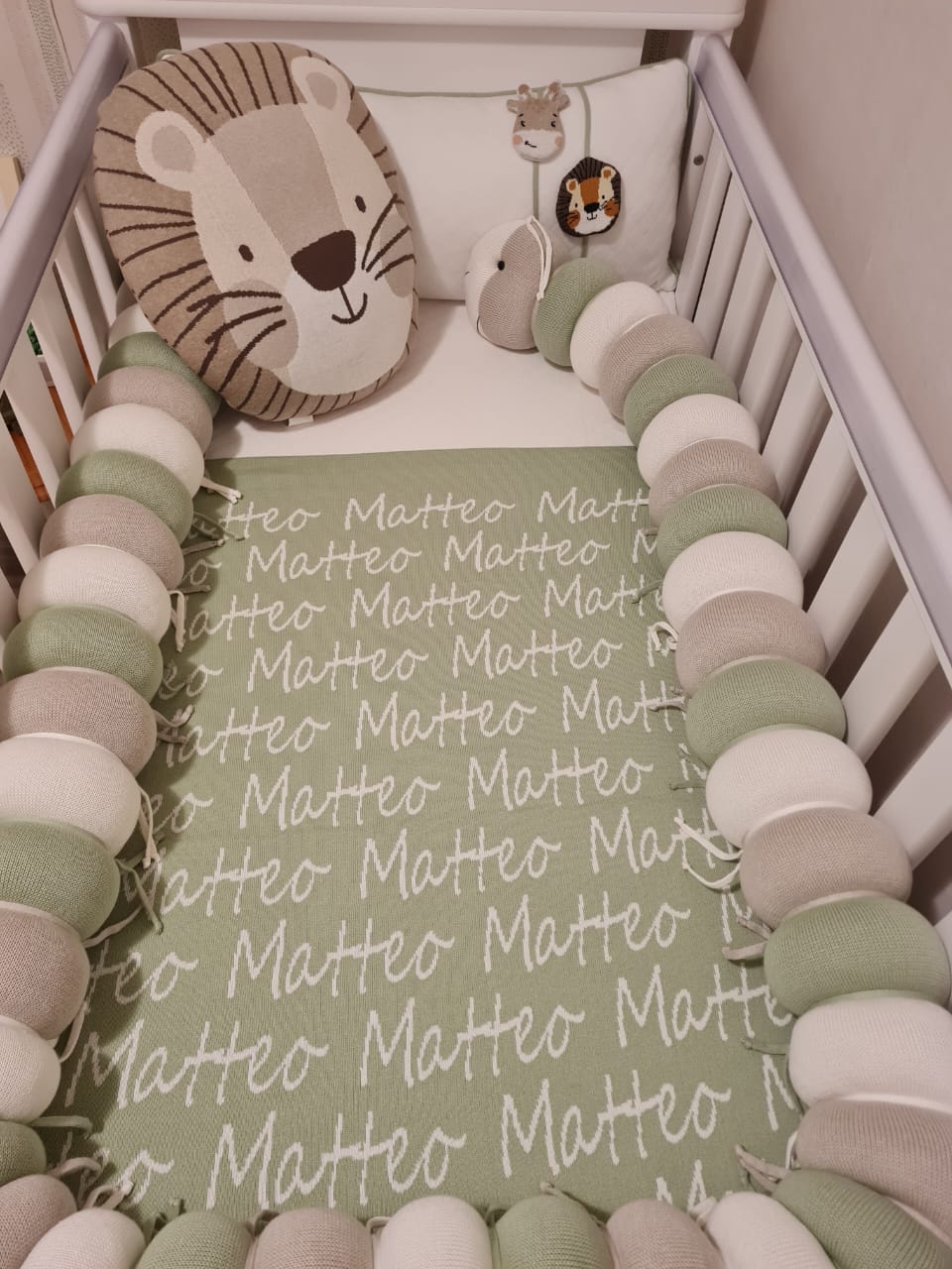 O Kit Berço é feito em malha jackard com tricô. O Enxoval de berço é composto por 5 peças. A cabeceira, possui zíper e enchimento removível. O Enxoval de berço é super macio e suave, para as mamães que possuem bom gosto e querem um quartinho super moderno, lindo e cheio de charme.