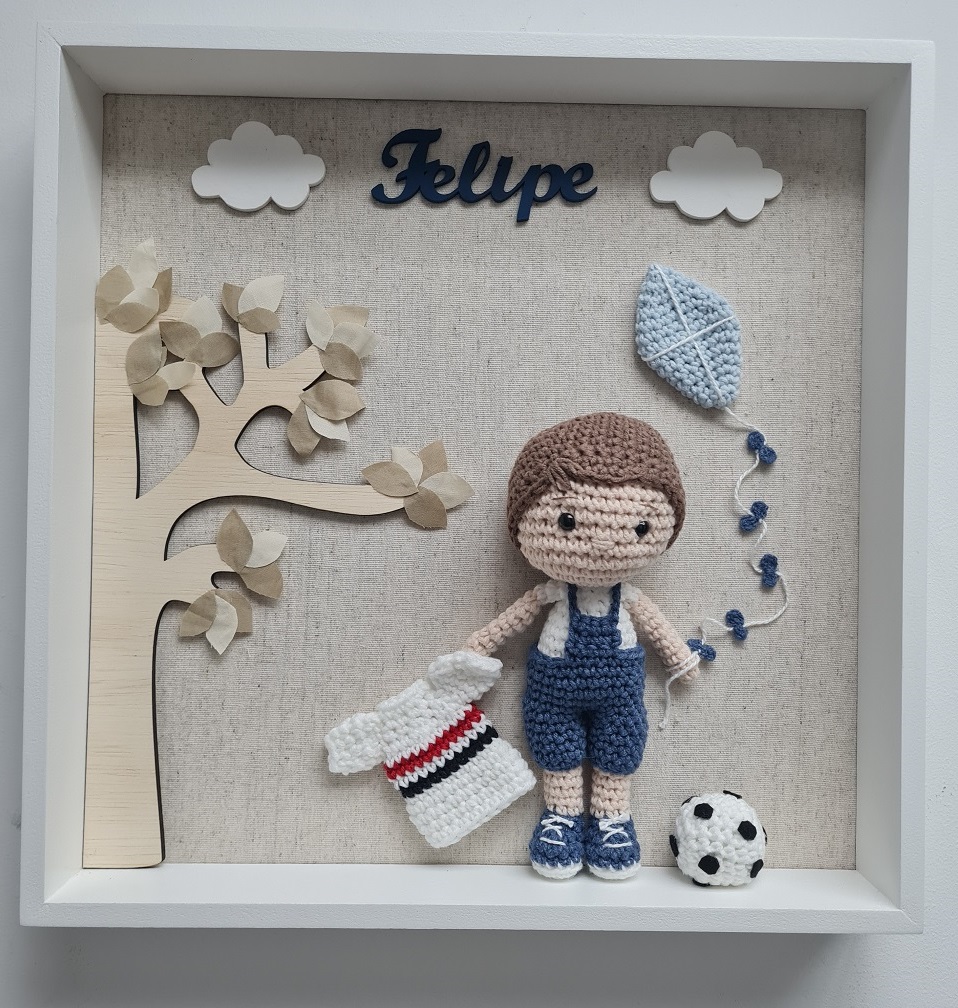 • 1 Menino amigurumi, 1 Camiseta, 1 Bola e 1 pipa.